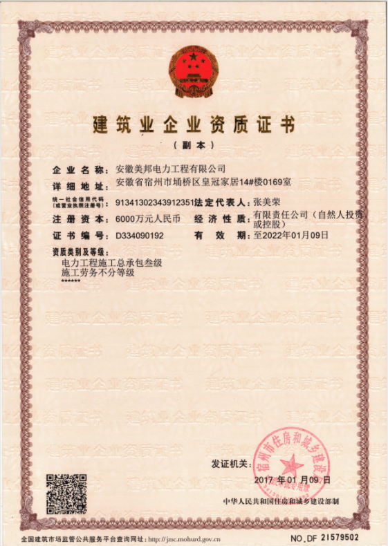 安徽美邦電力工程有限公司成立于2015年6月,坐落于宿州高新區(qū)。是一家從事電力工程設(shè)計、電力設(shè)備生產(chǎn)、電力工程施工、電力托管服務(wù)、電力工程搶險為一體的一站式綜合性公司。公司現(xiàn)有各類專業(yè)技術(shù)職稱的管理人員及大批從事電力工程專業(yè)施…